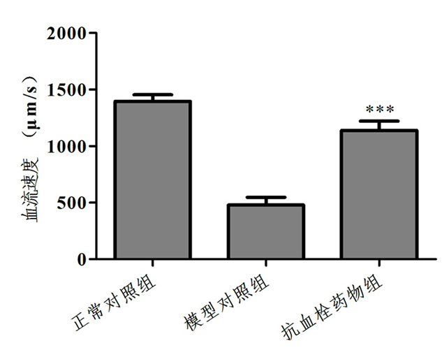可以看到,服用抗血栓药物组的血流速度与模型对照组比较,血流速度显著加快。